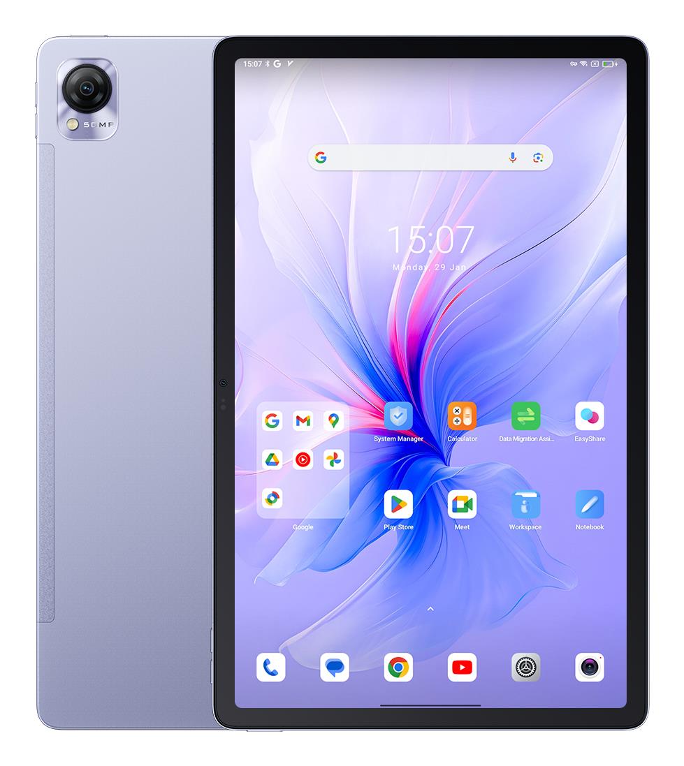 Summary Blackview MEGA 1. Display diagonal: 29.2 cm (11.5″). Internal storage capacity: 256 GB. Processor family: Mediatek, Processor model: Helio G99. Internal memory: 12 GB. Rear camera resolution (numeric): 50 MP, Rear camera type: Single camera, Front camera resolution (numeric): 13 MP, Front camera. Top Wi-Fi standard: Wi-Fi 5 (802.11ac). Card reader integrated. Weight: 528 g. Operating system installed: Android 13. Product colour: Purple